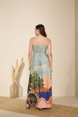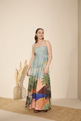 Tropical Print Cotton Poplin Square-Neck Maxi Dress