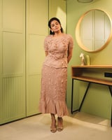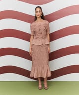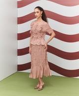 Peach Textured Top and Midi Skirt Co-ord Set
