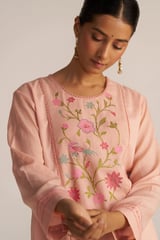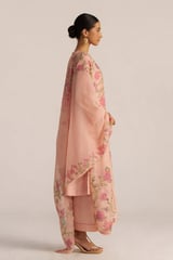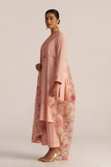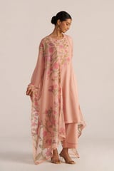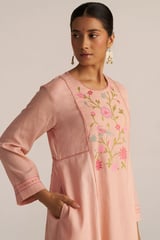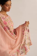 Pale Blush Embroidered A-Line Kurta Set with Dupatta