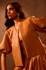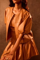 Tan Faux Leather Box Pleat Mini Skirt