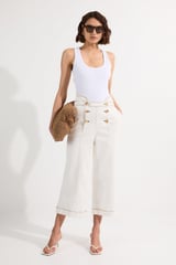 Denim Button Front Culottes Trousers