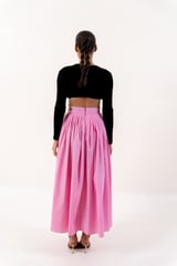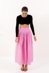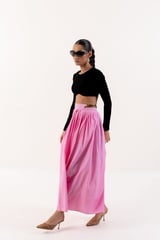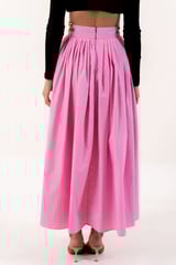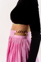 Pink Pleated High-Waist Ombre Maxi Skirt with Chain Detail