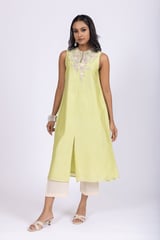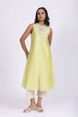 Mint Green A-Line Chanderi Embroidered Kurta Set