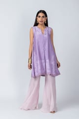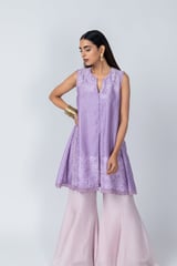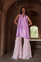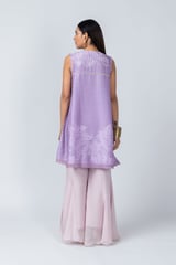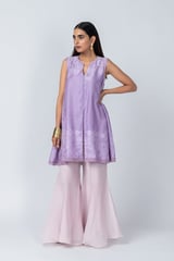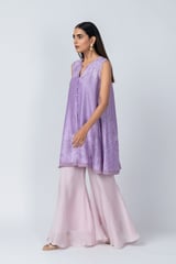Lilac Striped Floral A-Line Tunic and Sharara Set