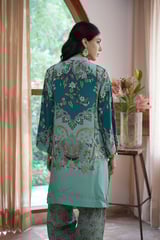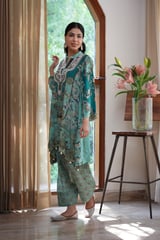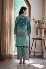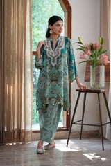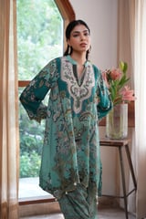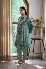 Green Printed Kurta Set with Hand-Embroidered Yoke