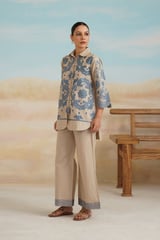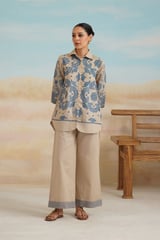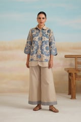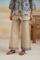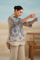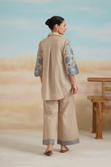 Beige Cotton Linen Embroidered Shirt and Pants Co-ord Set