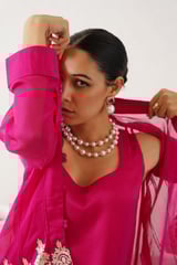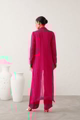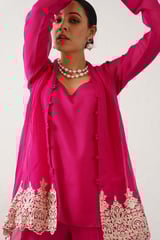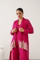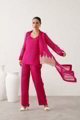 Magenta Embroidered 3-Piece Co-ord Set with Wide-Leg Pants