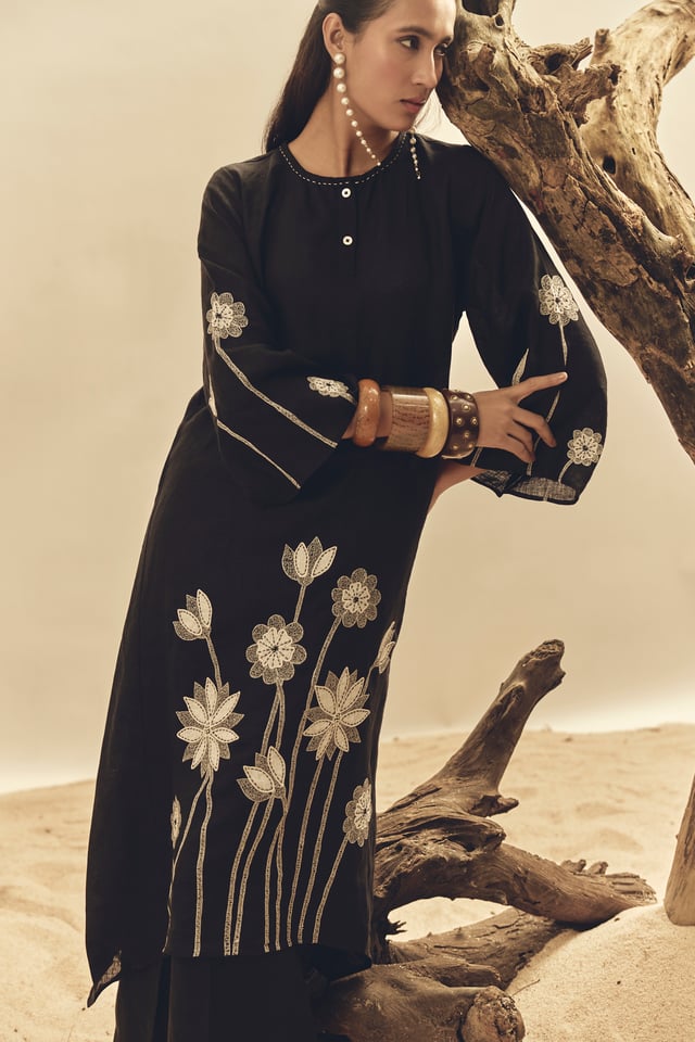 Black Emb Dress, Pants