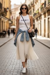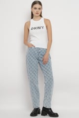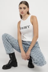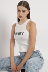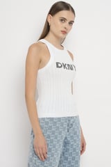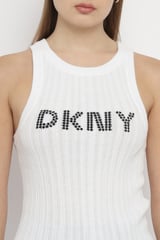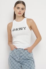 White Rib-Knit DKNY Logo Tank Top