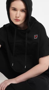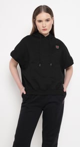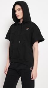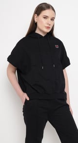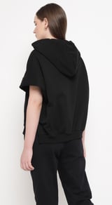 Black Oversized Half Sleeve Pullover Hoodie Sweatshirt