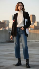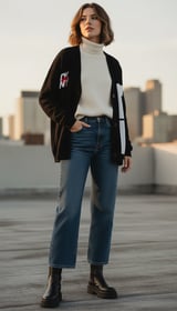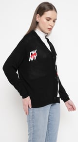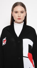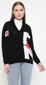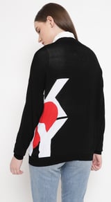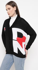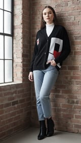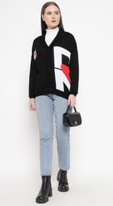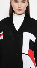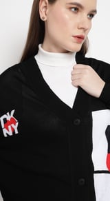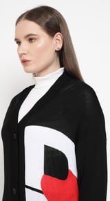 Black Graphic Colorblock Button-Front Cardigan
