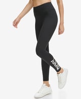Black High-Rise Full-Length Leggings with Graphic Detail