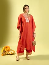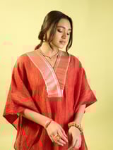 Red Crinkle Kaftan Set
