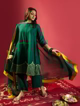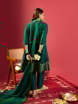 Green Shoulder Kali Kurta With Pant And Dupatta