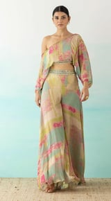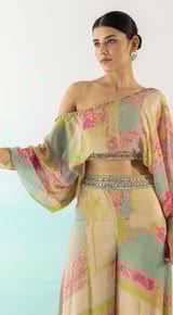 One Shoulder Crop Top And Palazzo Set