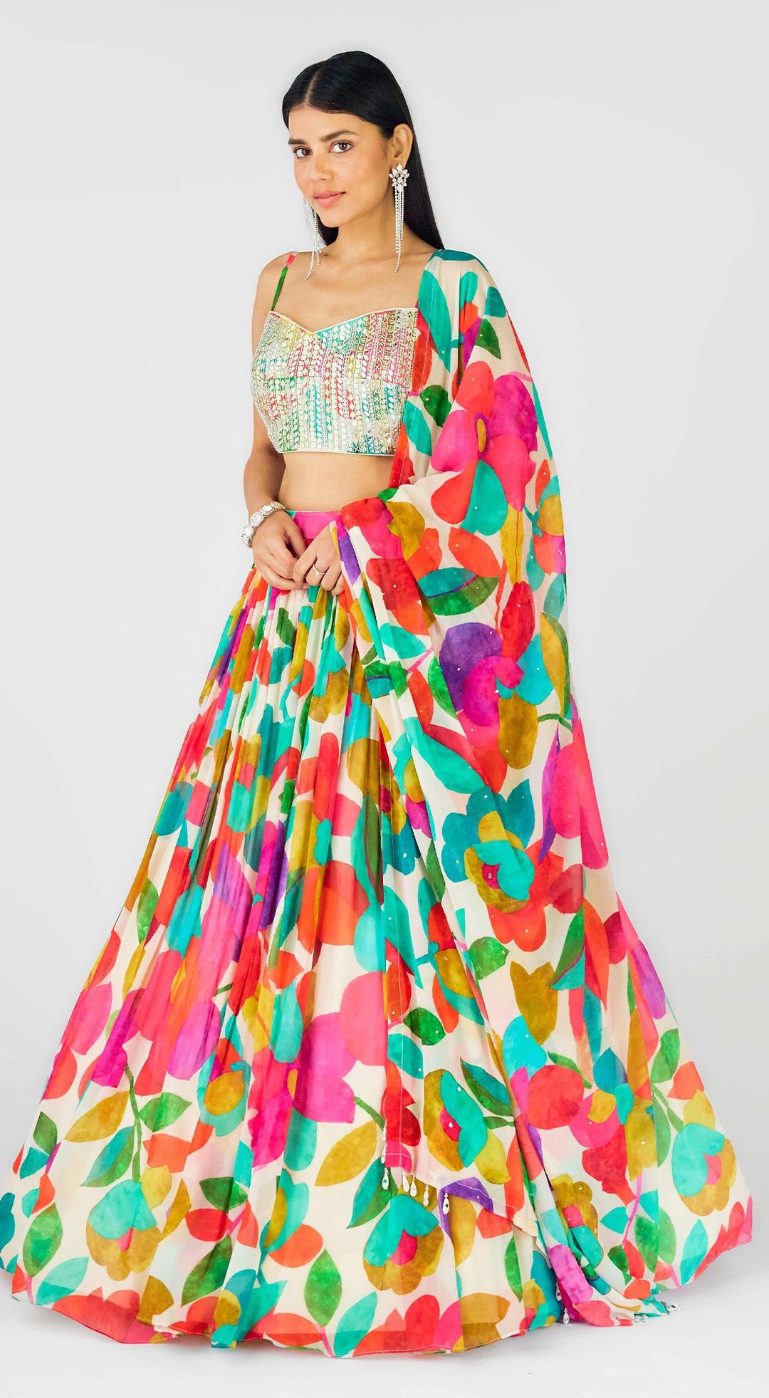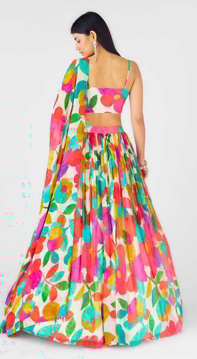 Georgette Embroidered Abstract Lehenga Set
