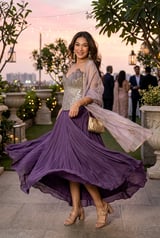 Purple Mirror-Work Corset Lehenga Set with Dupatta