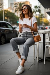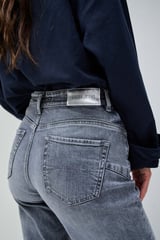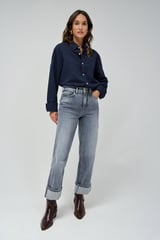 Light Grey High-Rise Straight-Leg Jeans with Cuffed Hem