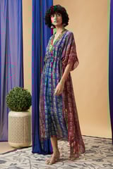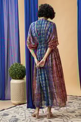 Beige Printed Chiffon Kurta Set with Embellished V-Neck