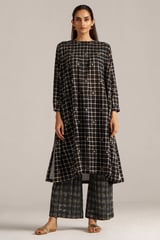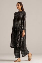 Black Check Kurta and Wide-Leg Pant Co-ord Set