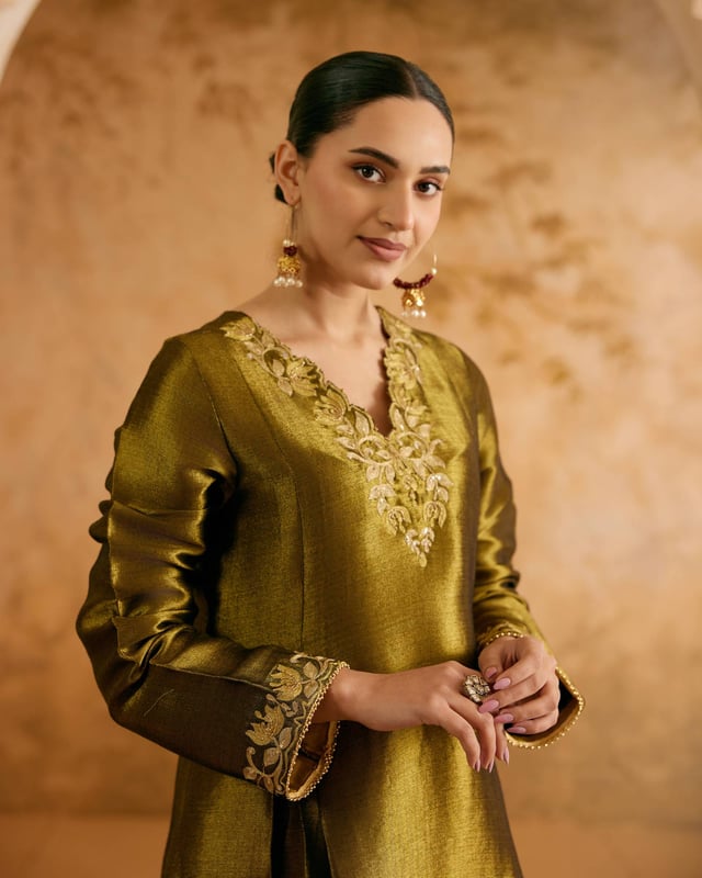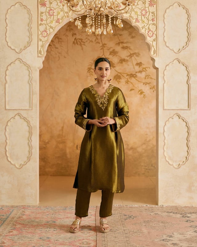 Black Rose Tissue Kurta With Narrow Pants - Set of 2