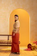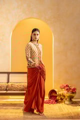 Beige Jacket and Maroon Drape Maxi Skirt Co-ord Set