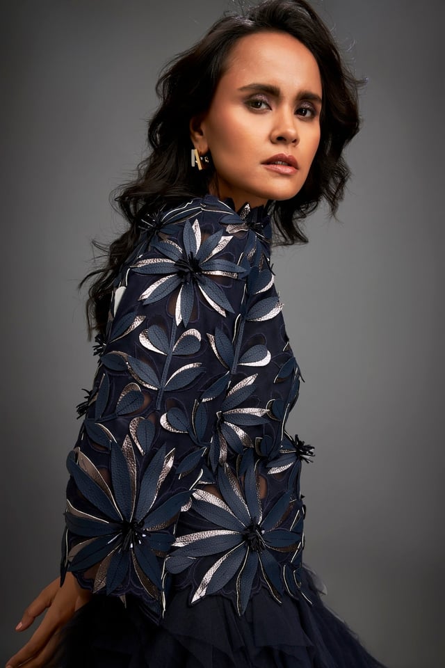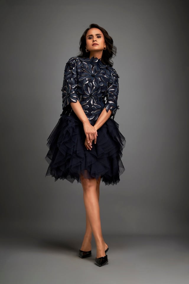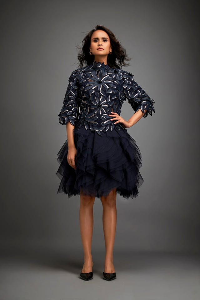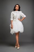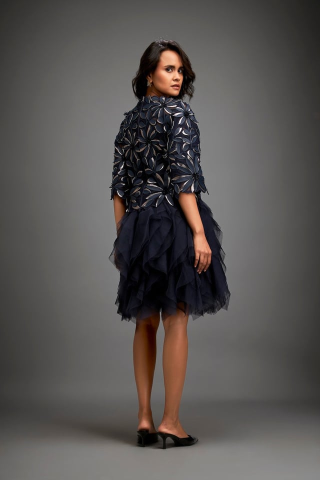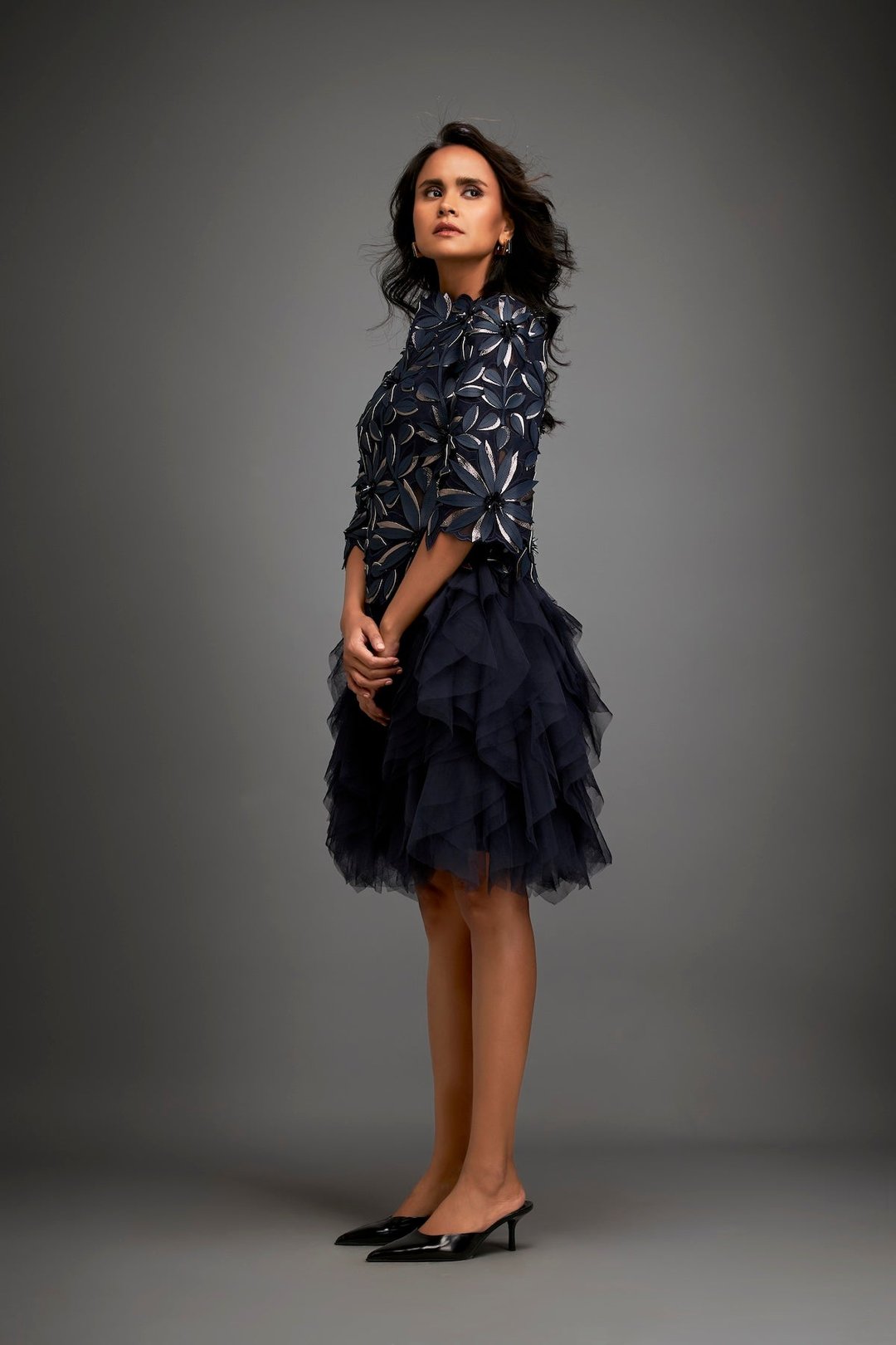 Floral Patterned Dress with Layered Ruffled Sheer Bottom