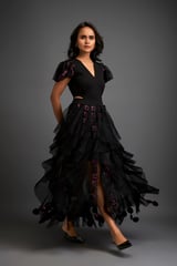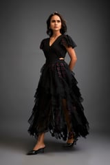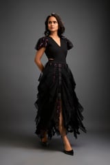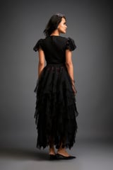Layered Cascading Sheer Skirt With Intricate Pink Cutwork Detailing