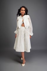 Cropped Bomber Jacket with Sheer Organza Sleeves