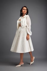 3D Textured A-Line Skirt with Grid Pattern