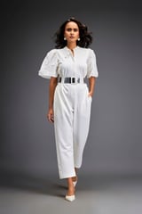 Waist Cut Out Jumpsuit Comes With Metallic Belt