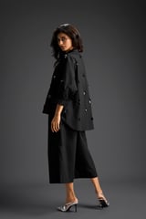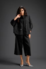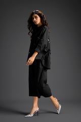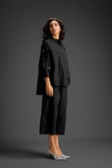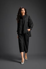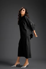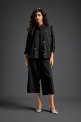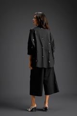 Black Butterfly Embellished Pleated Shirt & Pants Set