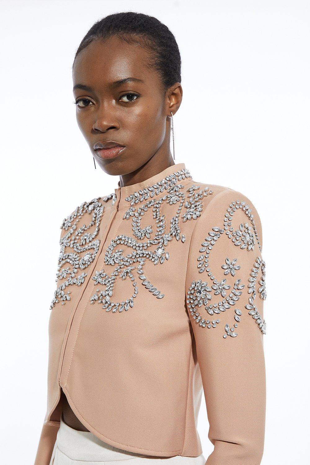 Figure Form Bandage Embellished Knit Jacket
