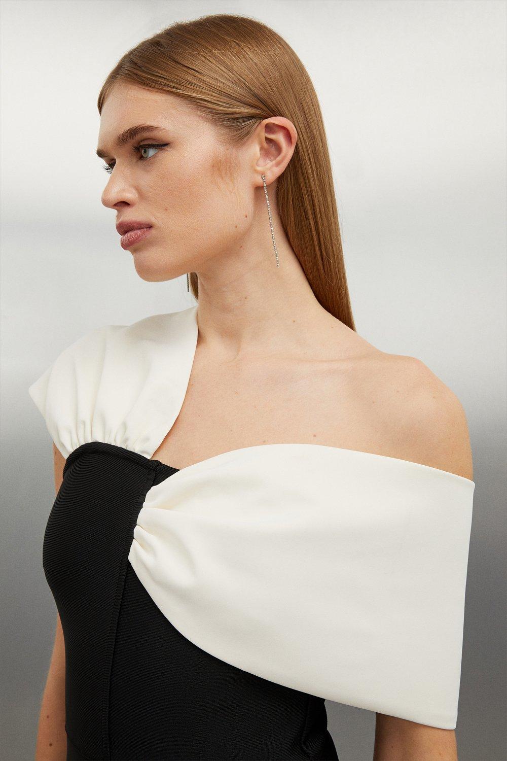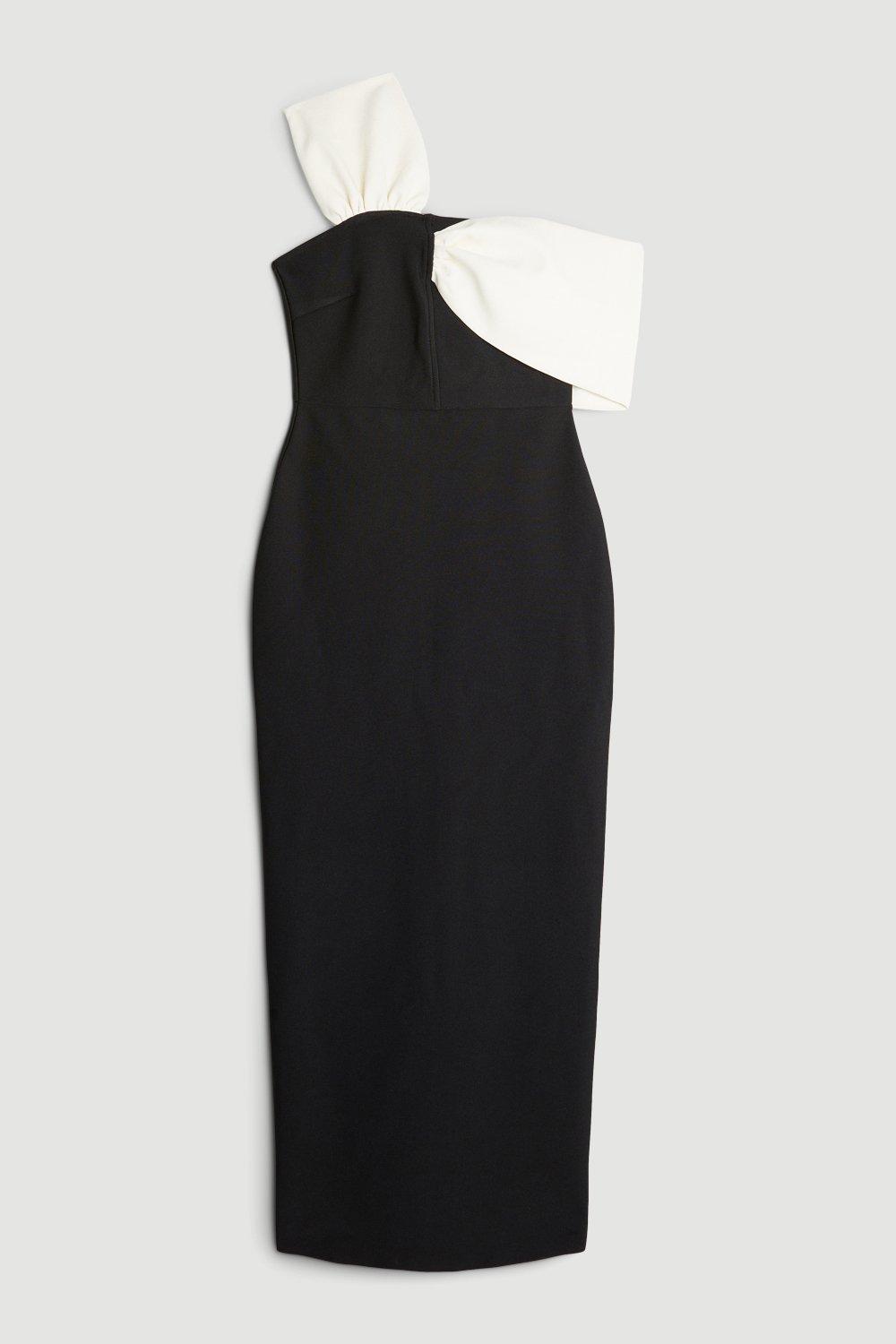 Figure Form Bandage Asymmetric Strap Knit Midi Dress