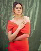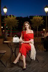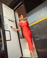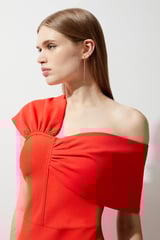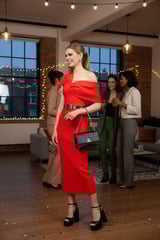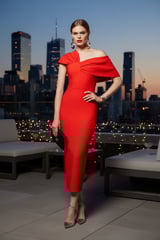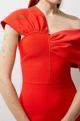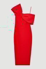 Red One-Shoulder Bandage Knit Bodycon Midi Dress