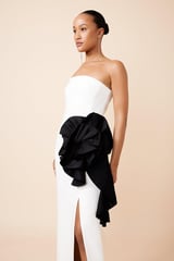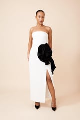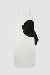 Compact Stretch Taffeta Rosette Midi Dress