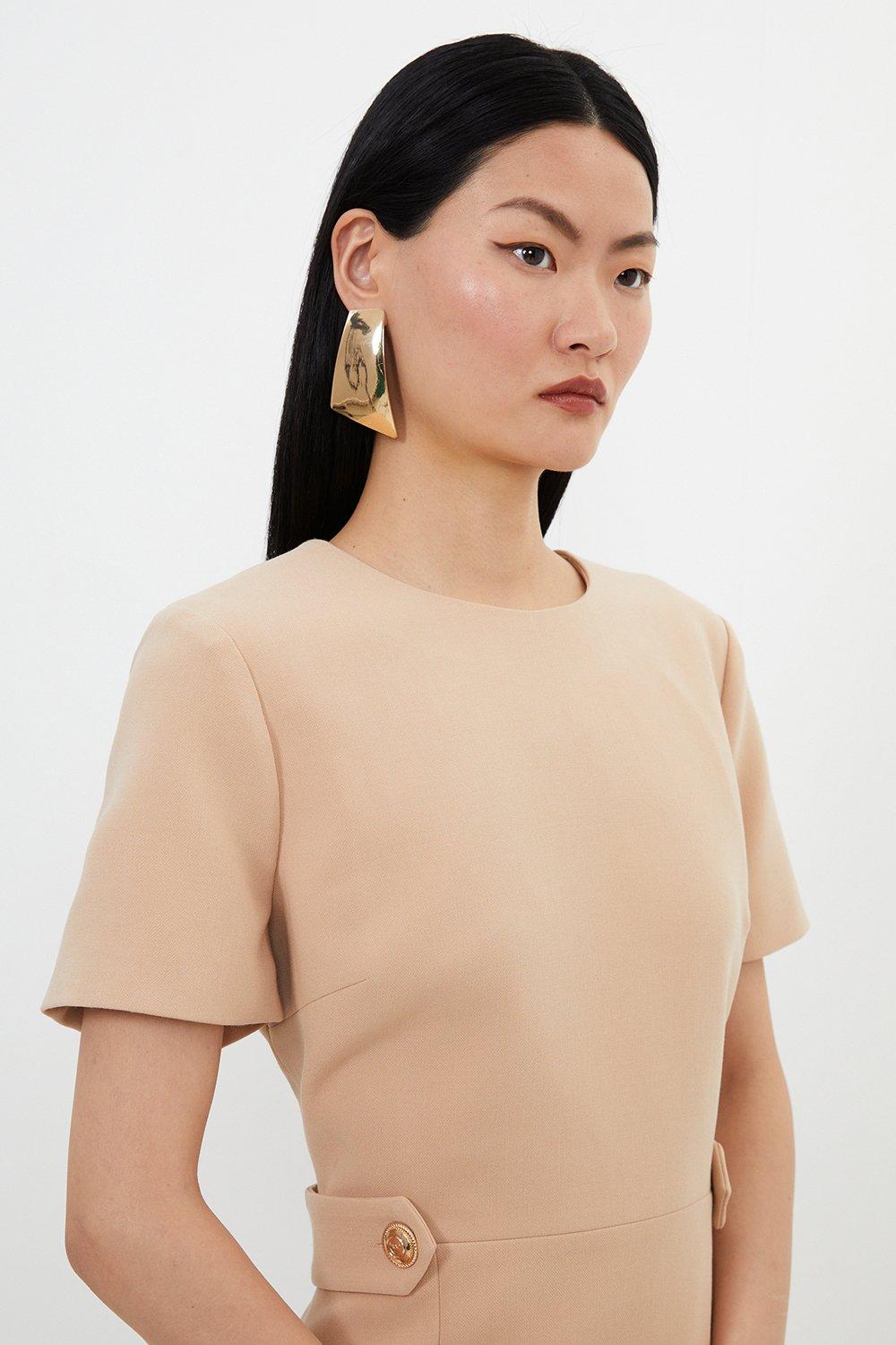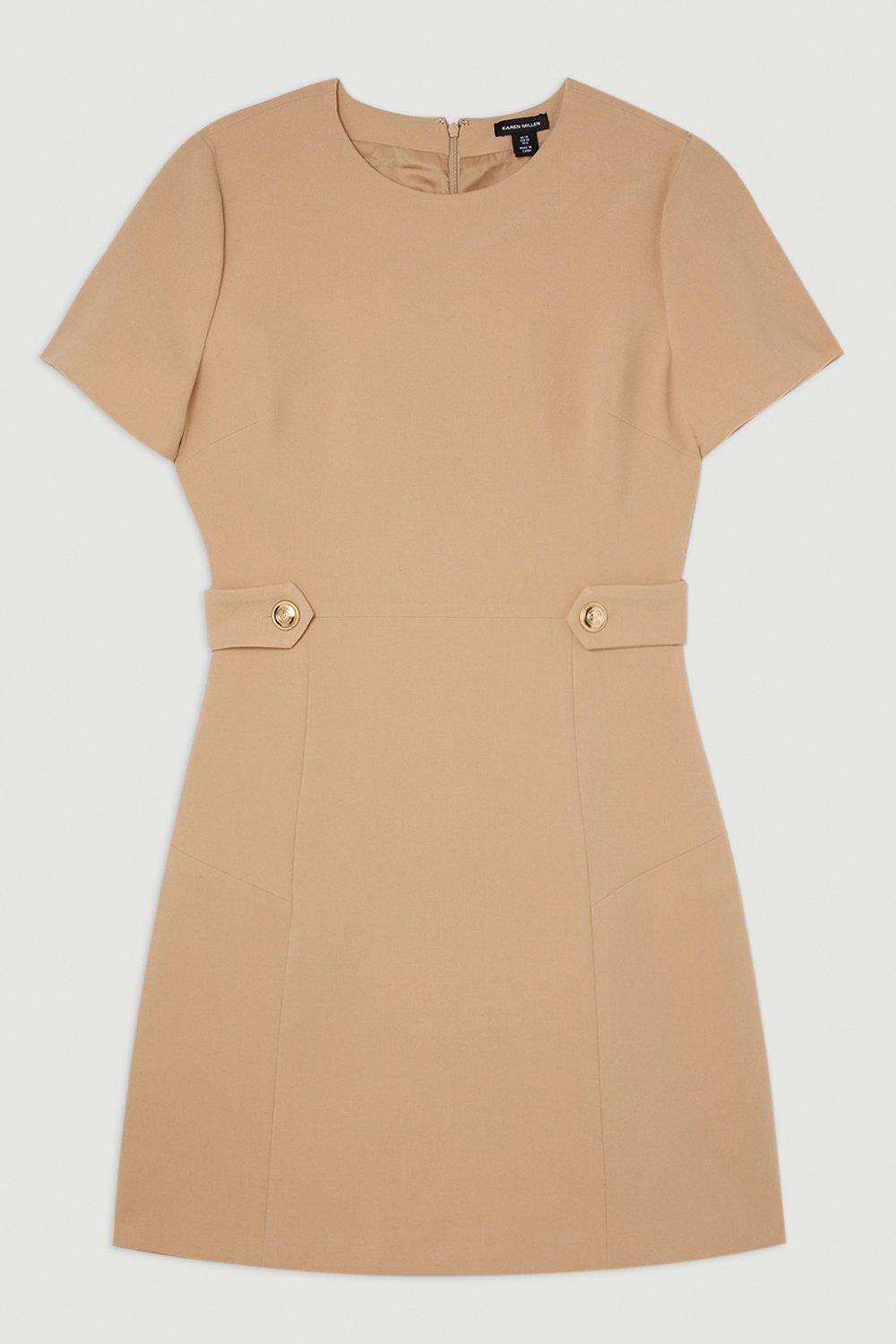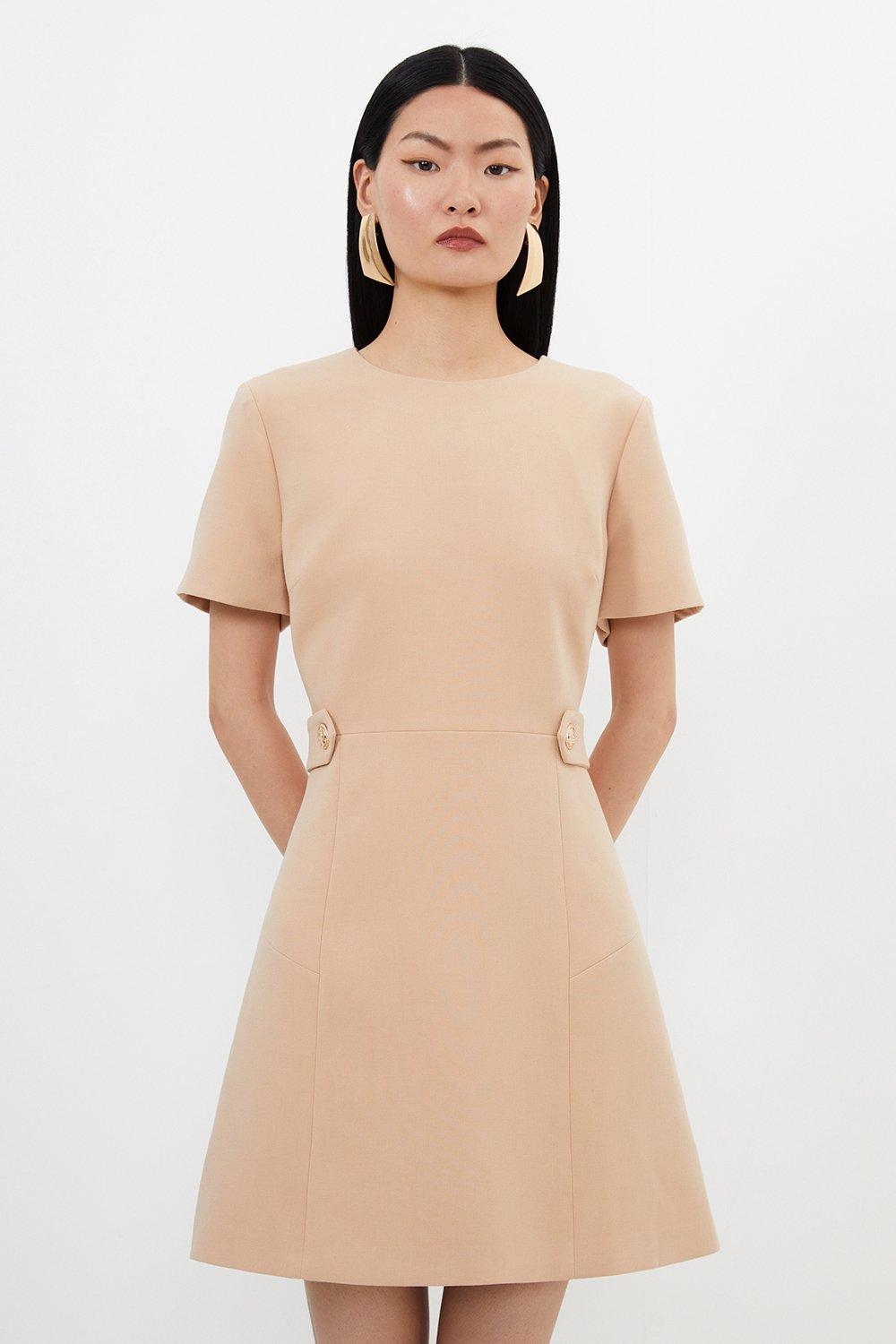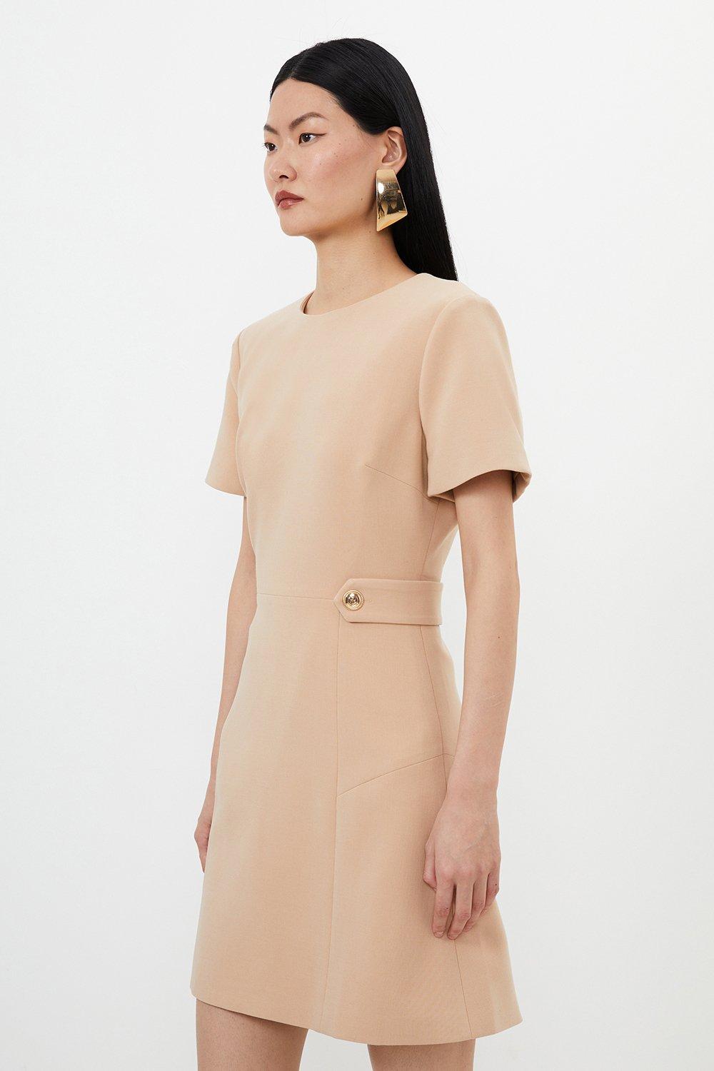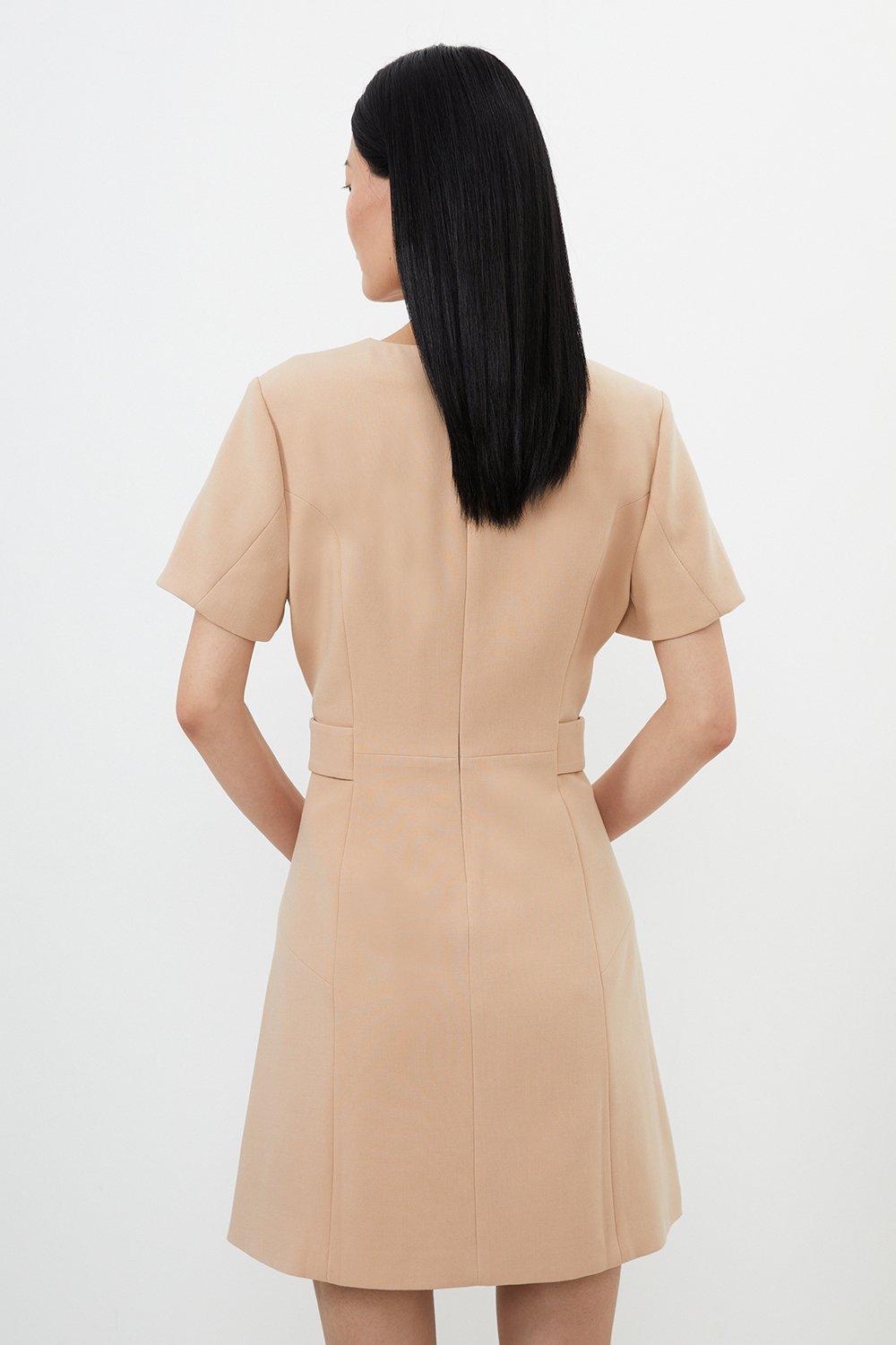 Compact Stretch Essential Waist Tab Detail Tailored Mini Dress