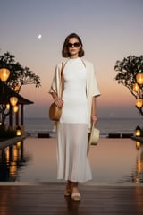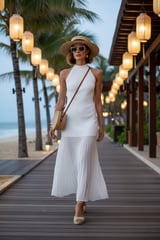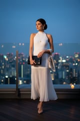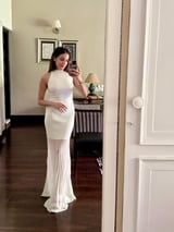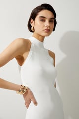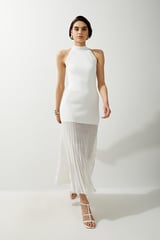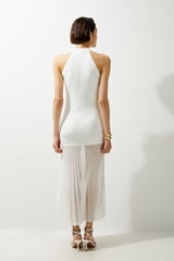 Viscose Blend Knit Halter Neck Sheer Skirt Midaxi Dress