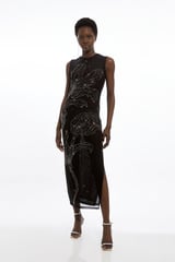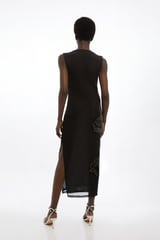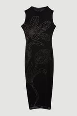 Placed Embellished Floral Mesh Jersey Midi Dress