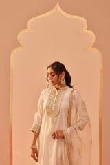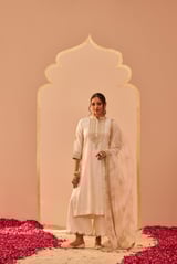 Daisy Ivory Block Print Kurta Set with Palazzo and Dupatta