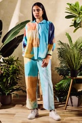 Poplin Printed Collared Shirt Pant Co-ord Set