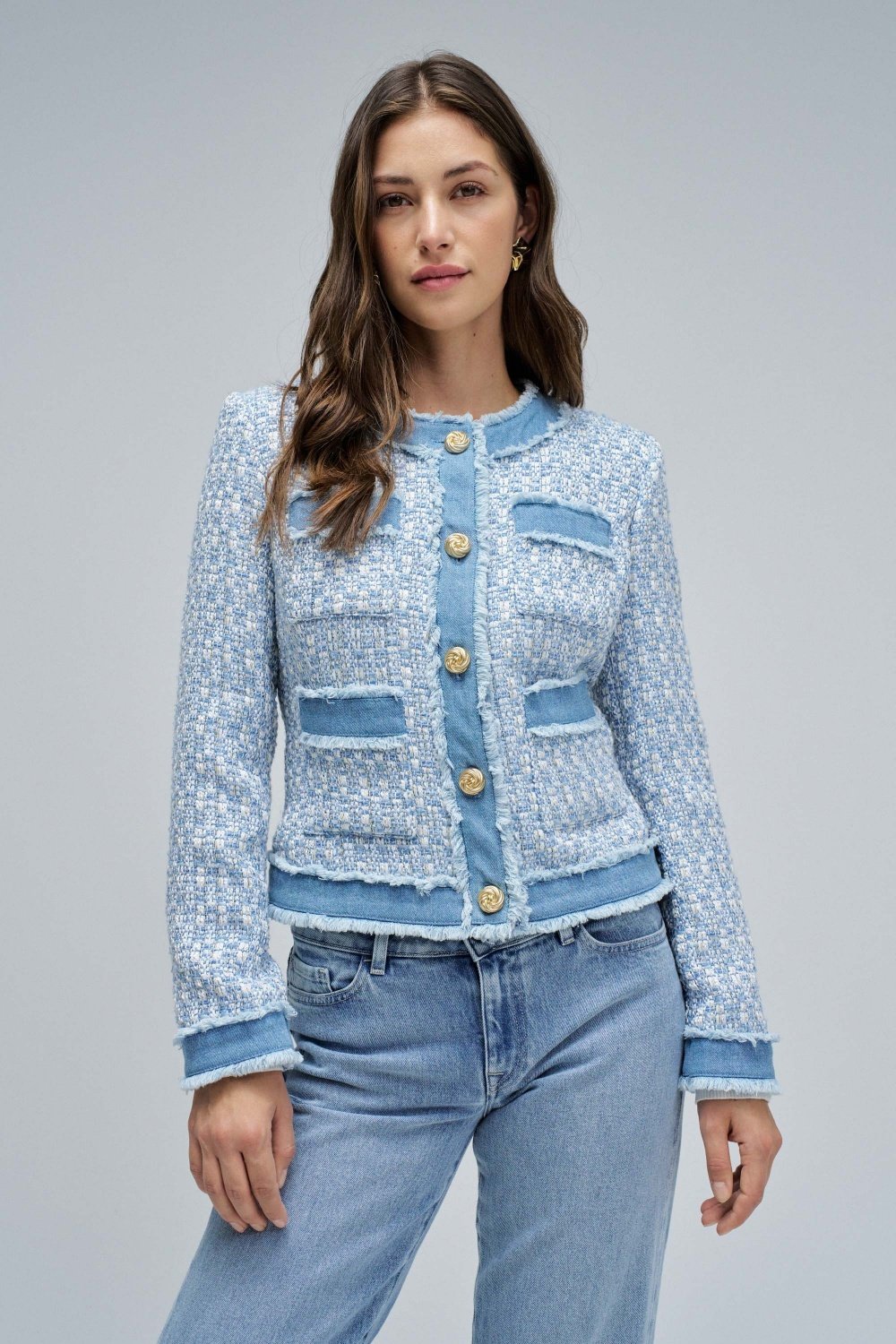 Tweed Coat with Denim Details