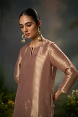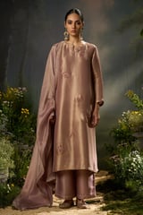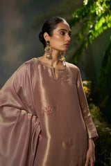 Onion Zari Woven Straight Kurta Set with Dupatta