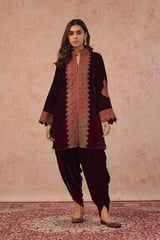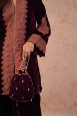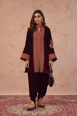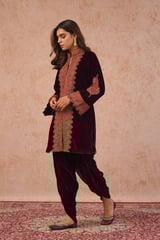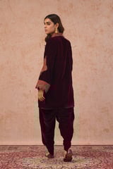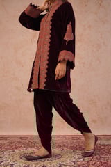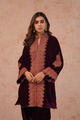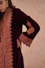 Wine Velvet Zip-Front Embroidered Kurta Set