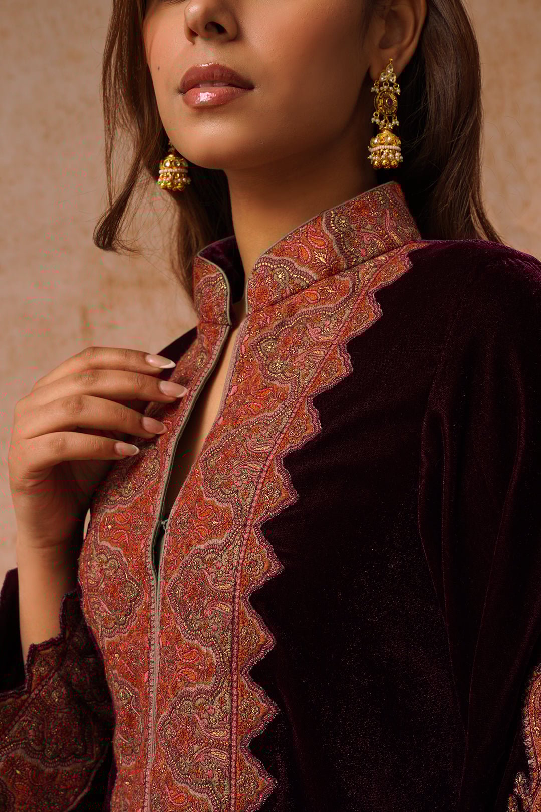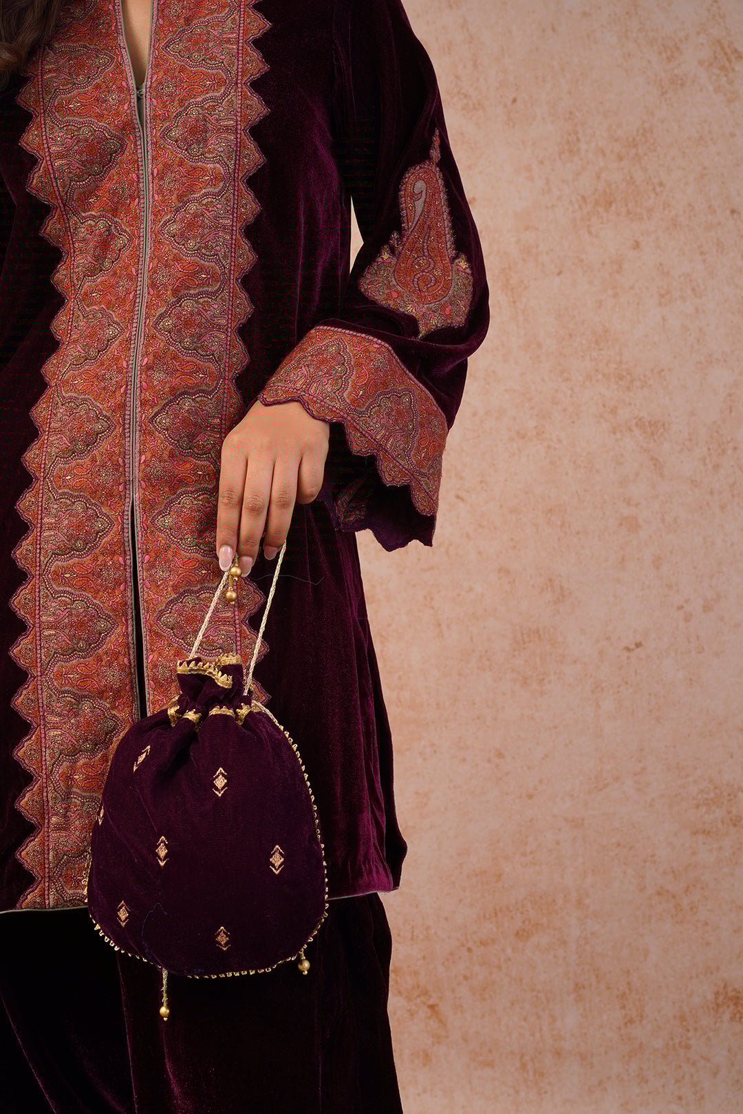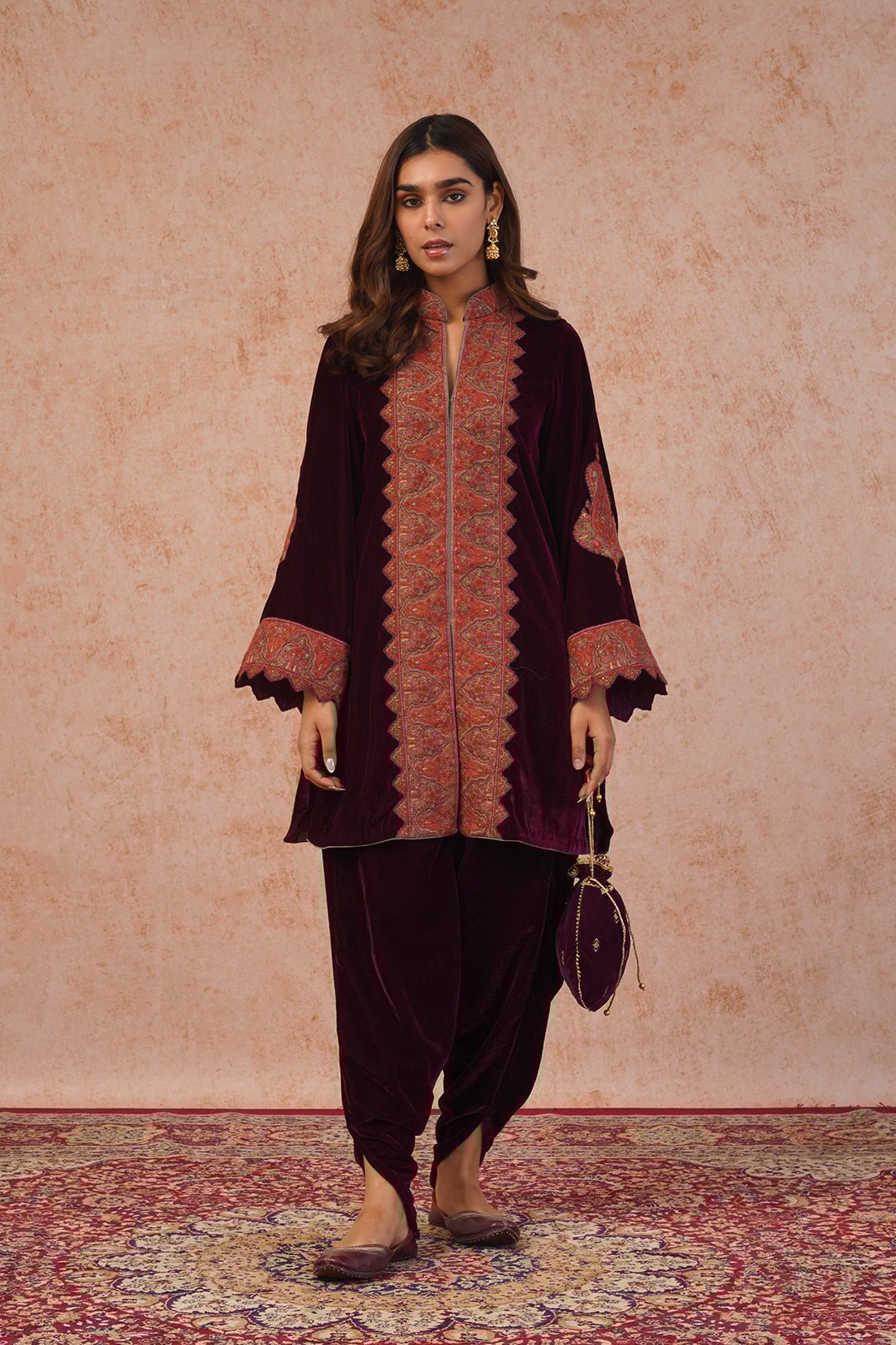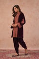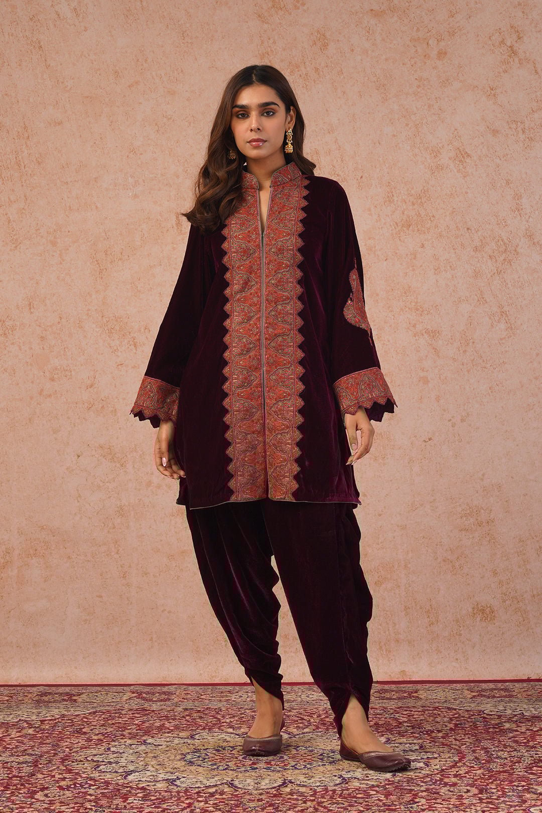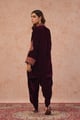 Wine Velvet Dhoti Set with Thread Embroidery
