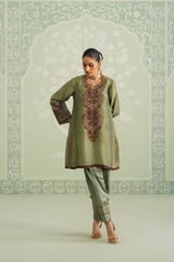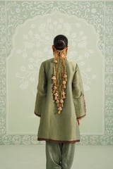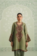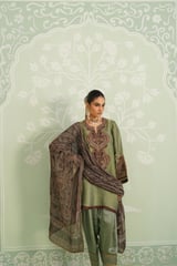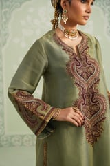 Green Shimmer Satin Embroidered 3-Piece Kurta Set