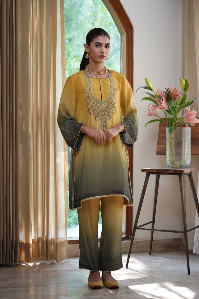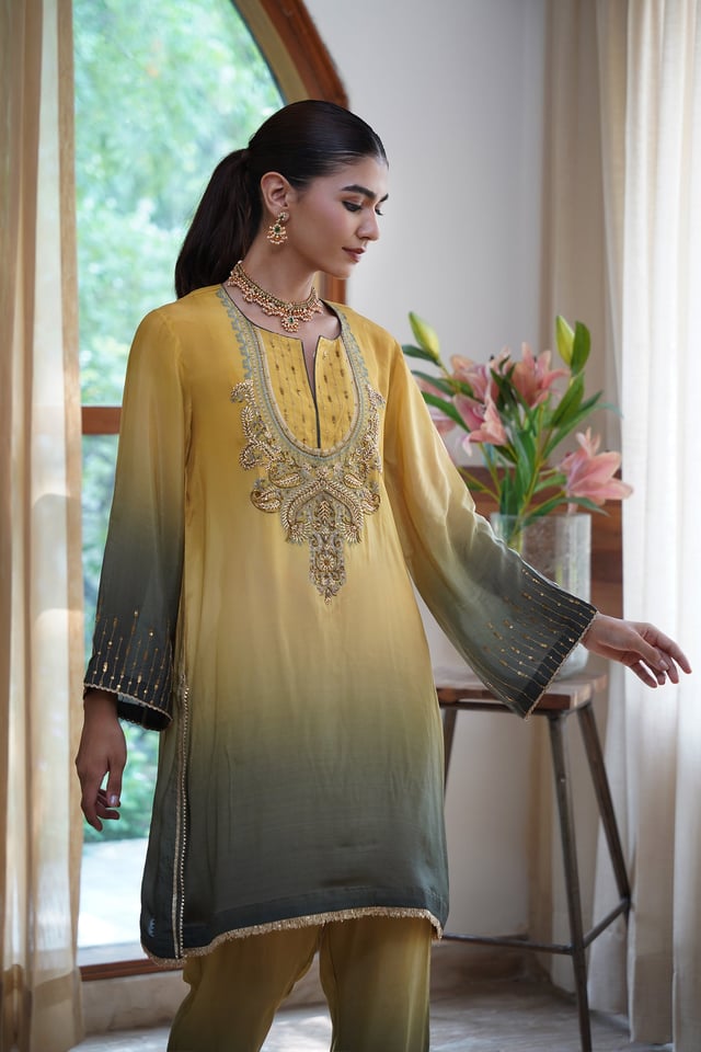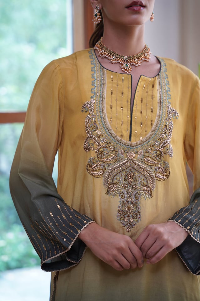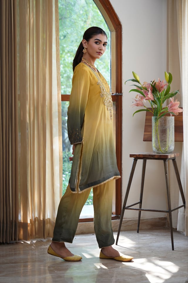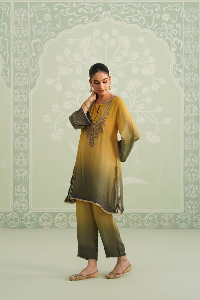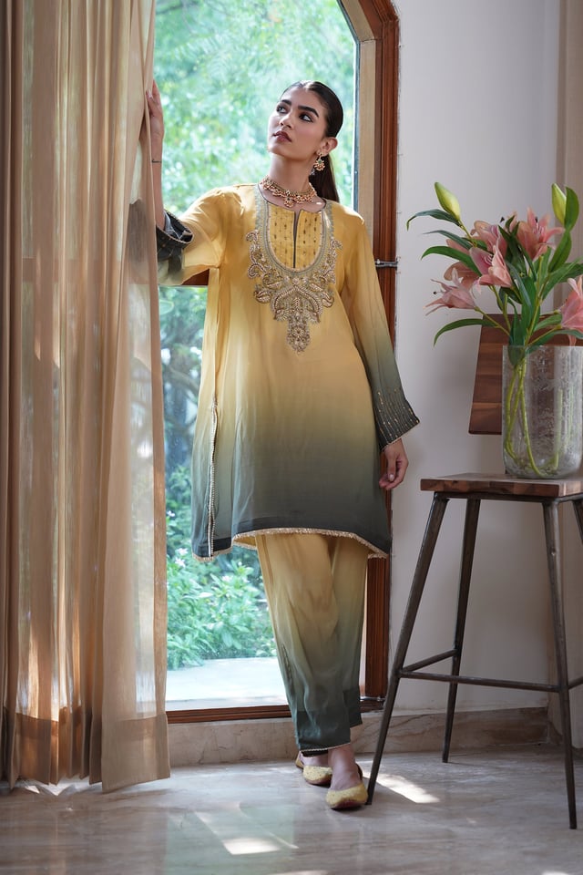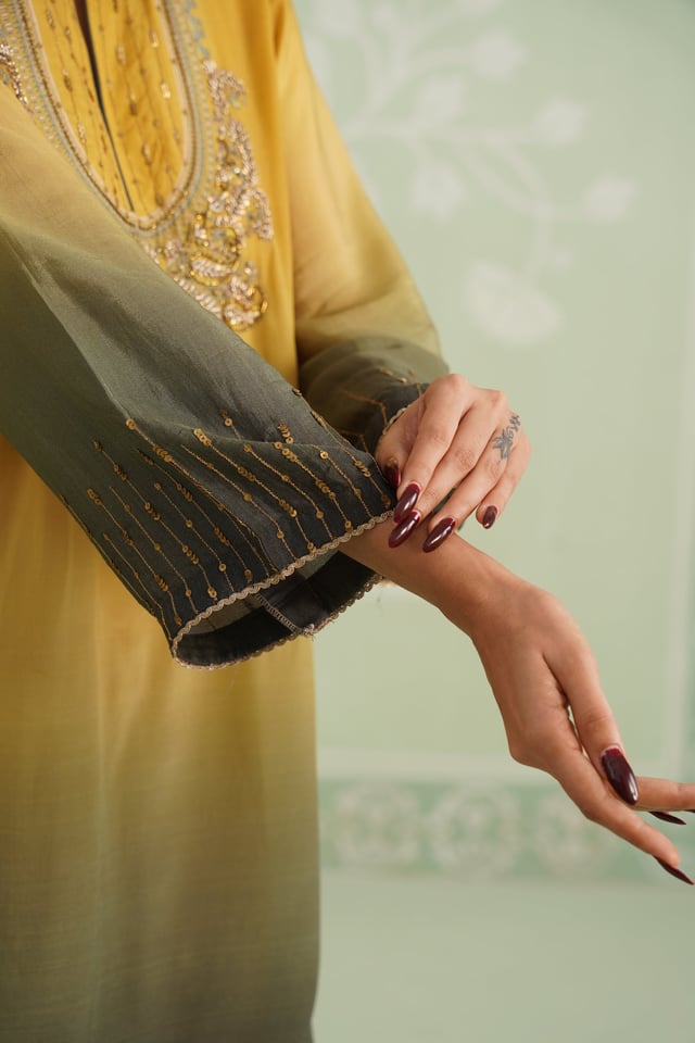 Ruhani Hand Embroidered Crepe Printed Matching Set