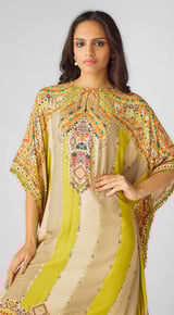 Lime Muslin Embroidered Kaftan Set