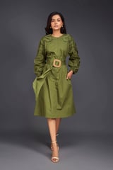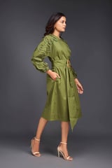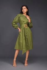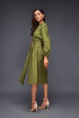 MIDI DRESS WITH PLEATED FRILL DETAILING ON SLEEVES COMES WITH BELT