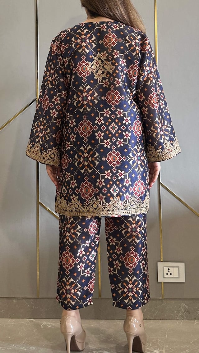 Navy Patola Embroidered Phiran Coord (Without Potli)